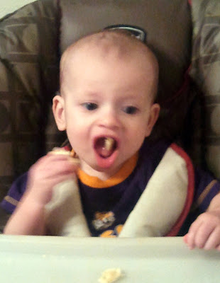 I was pleasantly surprised when Jack's (excellent) teachers at daycare (we call it school) informed me sheepishly the other day that they had given him crackers. He seemed hungry, they explained, and we had previously discussed how it's high time to introduce self-feeding and textures into the baby food mix.